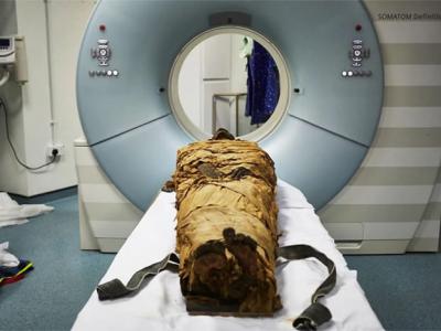 英国北爱尔兰贝尔法斯特阿尔斯特博物馆古埃及木乃伊扫描显示贵族妇人或被刀刺杀死亡...
