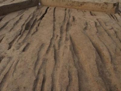 车辙分布密集紧凑且保存良好,非常罕见。考古人员发现疑似脚印。(神秘的地球uux.c...