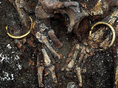 考古学家发现充满历史故事的金封环。考古学以电脑模拟技术,重现蜂窝墓原貌。(神秘...