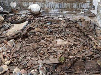 考古学家在古墓出土该具女性骸骨(左图)和不少陪葬品(右图)。专家分析骸骨后认为...