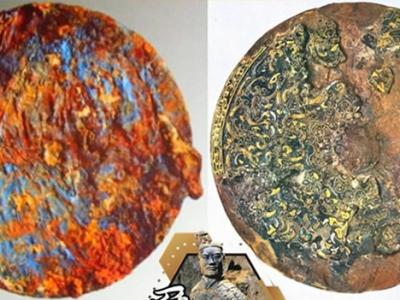 曹操墓铁镜(左图)酷似金银错嵌珠龙文铁镜(右图)。(神秘的地球uux.cn报道)据东...