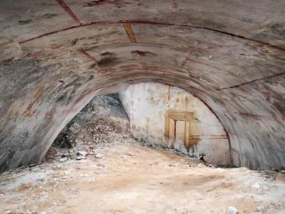 密室大部分被埋土下,只露出拱顶。壁画绘有动物图案。壁画上亦...