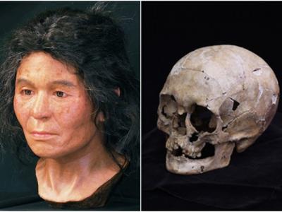 团队根据头盖骨(右图)模拟出该名女子生前的样貌(左图)。(...