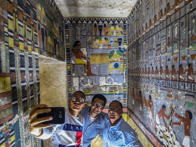 4300年前埃及第五王朝时期古墓出土 浮雕色彩依然鲜艳浮雕描绘...