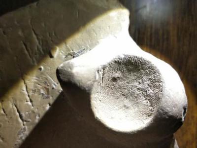 一块哺乳动物头骨化石,牙齿窝里的沉积物,原来是史前蜜蜂筑的巢穴。图片来源:uux...