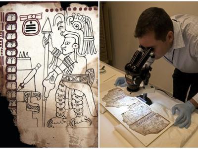 研究人员证明该份象形文字手抄稿,为古玛雅文明时代的文物。格...