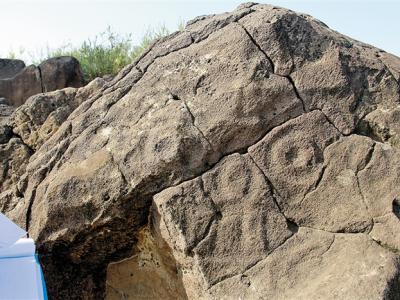 翁牛特旗东部沙漠中巨幅无轮廓人面像岩画沙漠中的人面像岩画一...
