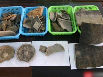 该座古墓主墓室的拱顶已被毁坏,只剩下一个空壳。古墓出土两件...