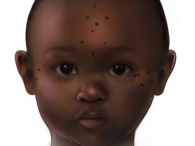 库卢布纳尔蒂一名3岁女性(公元657–855年)额头纹身的重建。图片来源:uux.cn/Mar...