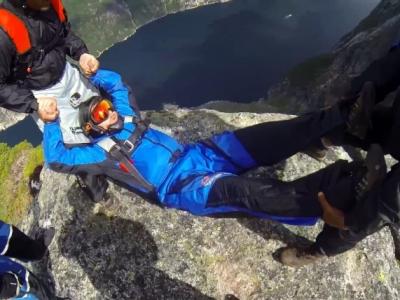 挪威一批定点跳伞爱好者作另类挑战