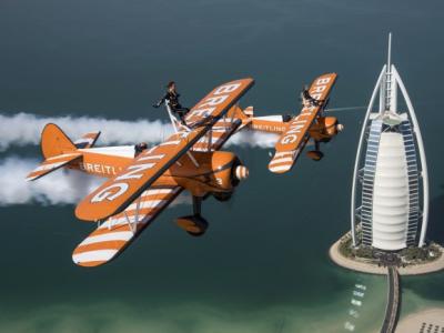 两名艺高人胆大的女子,站在机翼上飞越伯瓷酒店。 面对脚下万尺高空,两人亦无...