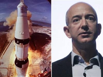 运载阿波罗11号的“土星五号”火箭和亚马逊总裁杰夫·贝佐斯 据英国媒体3月20日...