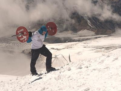 俄罗斯举重运动员扛75公斤重杠铃成功徒步登上海拔5642米欧洲最高峰厄尔布...
