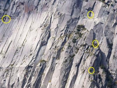 皮萨诺拍下的这张峭壁照片隐藏着4名攀山勇者,你找得到吗? 4名攀山者在这里(...