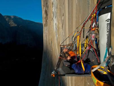 攀岩家伊沃.尼诺夫(Ivo Ninov)趁着悬挂在优胜美地国家公园...