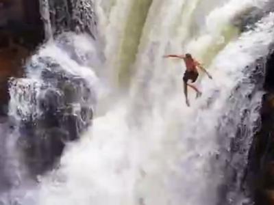 加拿大男子Chris Mezei没有穿戴任何安全装备纵身跳下12米高伦德布克瀑布 视...