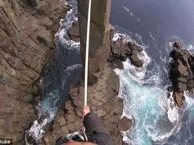 澳洲塔斯马尼亚极限运动员30米高空踩绳玩命,险失足堕崖 视频:澳洲塔斯...