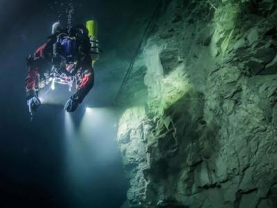 斯塔尔纳斯基带领的探测团队在捷克发现水底洞穴。 斯塔尔纳斯基和队员在看潜水...