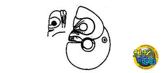 杨美莉先生认为D型勾云形器像鹰。我们也认为其更接近鸟形,确切些说是枭形,可称为勾云枭形器。中有双目,两侧为翅,下垂尾翼。只要将其与红山文化常见的枭形玉雕对照便可一目了然(图六)。学者不同意此说,可能主要也因为两点。一是认为下部凸出部分表现的是兽牙。二是认为翅部太复杂,与实际的鸟翅相去甚远。看一下东山嘴所出绿松石枭翅羽和尾羽的表现方式,就会感觉下凸部分表现羽毛的观点是合理的。翅部的问题确实复杂。受凌家滩双猪首翅鸟的启发,我们认为,至少本文图中列出的几件,翅的上半部表现的是猪首。华盛顿塞克勒博物馆藏品最似,毫无可疑之处(图七为此件藏品的猪首部分与辽宁建平所出玉猪龙的对比)。考虑到红山和凌家滩的密切联系,这一推测更具合理性,会在下文论及。