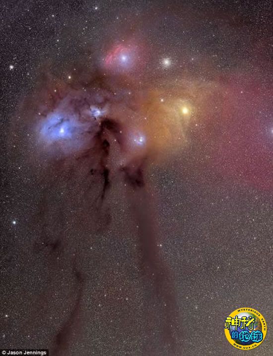这张美丽图片是由橫跨天空10度的8张照片拼接而成。它位于天蝎星座,如果你住在北半球,你就能在地平线附近的南部天空看到。这是澳大利亚天文摄影师贾森·詹宁斯在3个月中不同的4天拍到的。使用价值5400英镑的用于宽场空间成像的天文照相机,共拍摄8小时。