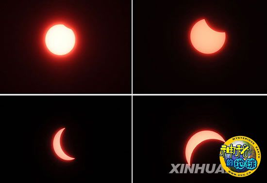 山东济南:日偏食 来源: 神秘的地球 时间:2009年7月23日 15:23 7月22日8时30分、8时50分、9时25分、9时50分(左上,右上,左下,右下)在济南拍摄的日食过程(拼版照片)。新华社记者 朱峥 摄 上一篇 下一篇 TAG: 日偏食