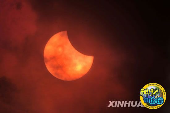 7月22日8时44分,内蒙古呼和浩特市出现日偏食。新华社记者李欣摄
