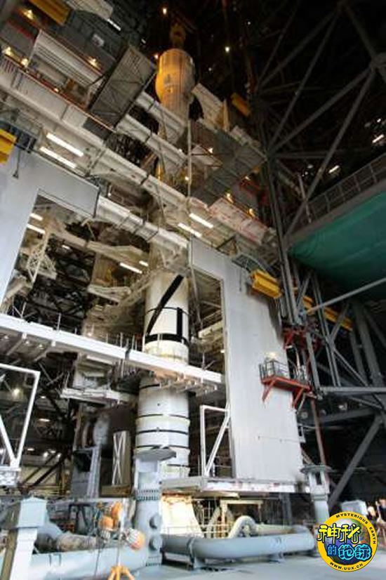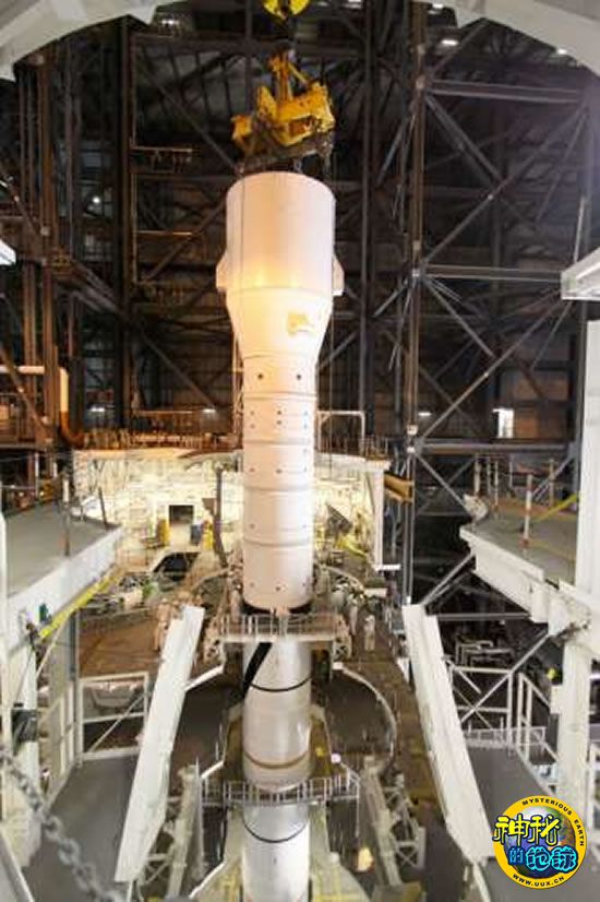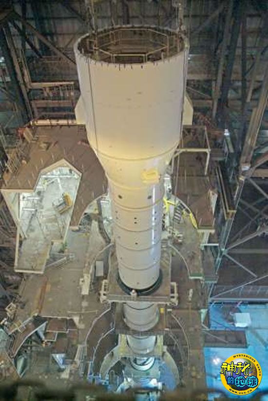 美国宇航局首枚“战神I-X”火箭目前在肯尼迪航天中心已经组装过半。