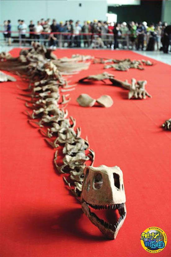 昨天,中国科技馆馆长徐延豪与恐龙赠送地云南楚雄彝族自治州副州长朱非等人一起揭开了巨大的红绸,3条龙随即映入眼帘。虽然化石被按身体形态摆放在地上,没有装架,但27米长的中侏罗纪世界最大的恐龙阿纳川街龙、7.1米长的“中华第一龙”许氏禄丰龙和7米长的罕见的肉食恐龙中国双脊龙“躺”在一起的场面仍十分震撼。