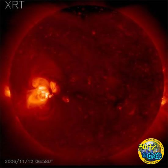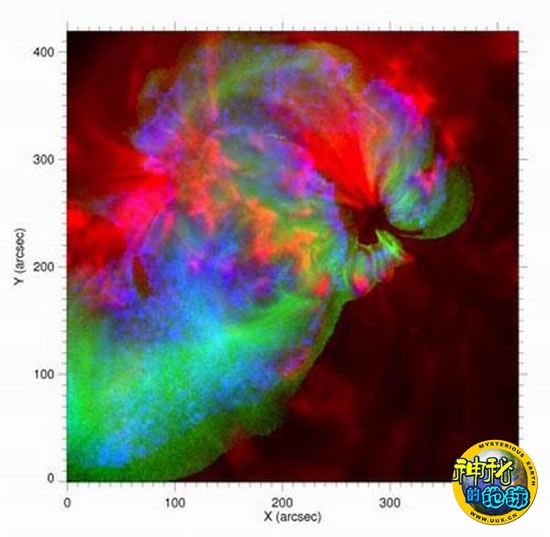 太阳表面活跃区域AR10923的温度多彩显示图,该区域等离子温度已达到1000万摄氏度