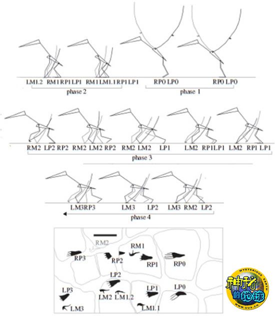 这些脚印显示,这只翼龙在天空盘旋飞行,觅食后,安全降落到地面上,把翅膀合拢起来。