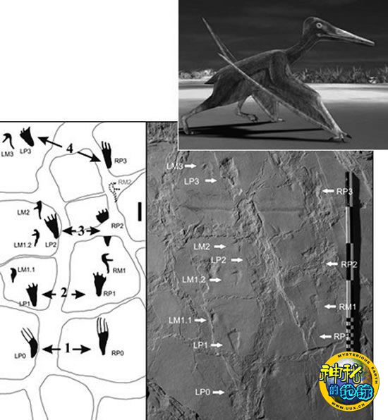古生物学家相信,这组四足印记是翼龙在着陆 “翼龙海滩”时留下的。