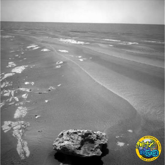 “机遇”号火星车在火星表面发现一块形状奇特的黑色岩石