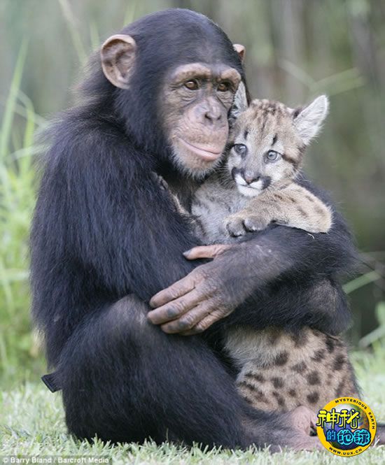 黑猩猩照顾小美洲狮