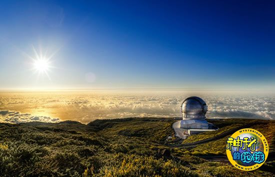 2009年8月6日,低悬的太阳照耀着加那利大型望远镜(以下简称GTC)穹顶周围的田野。GTC是用于观测天空的地面光学望远镜家族最新成员。