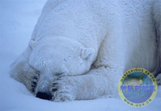一只沉睡的北极熊看起来很可爱,但小心点!北极熊处于北极食物链的顶端,它们没什么可害怕的,并会随时攻击人类。