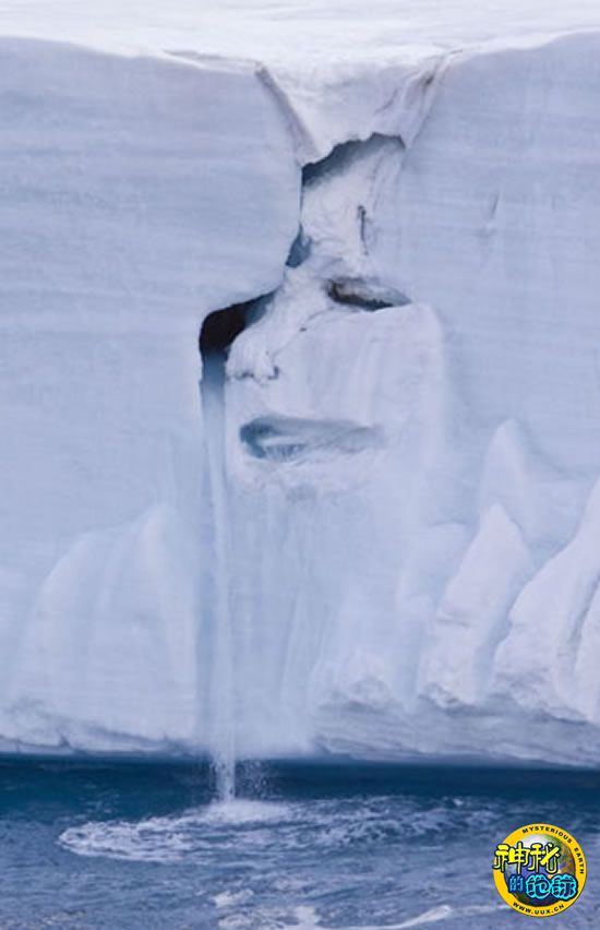 英国《每日邮报》9月3日公布了一张挪威北极地区冰川融化的照片,照片中融化的冰壁内出现了一张可怕的脸,融水成为这张令人恐怖的脸留下的伤心泪。