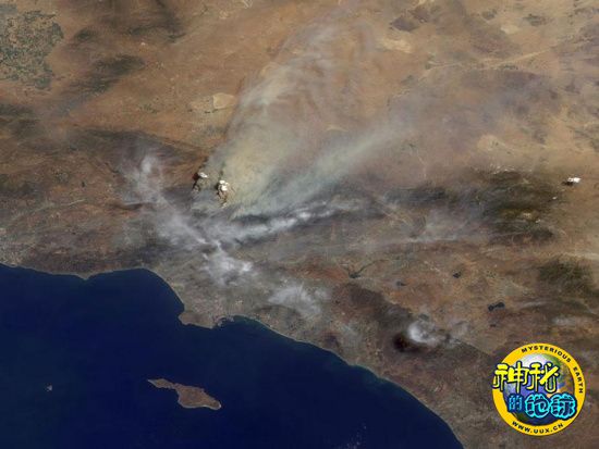 据美国宇航局网站报道,8月30清晨,美宇航局Terra探测卫星拍摄到了洛杉矶山火的太空照片,照片中显示山火所产生的浓烟飘到数百公里外。