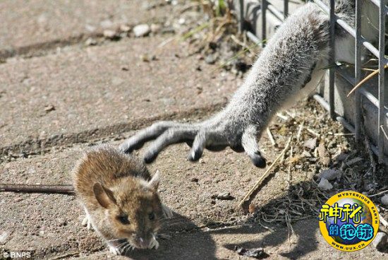 照片中这只老鼠眼看就要成为狐猴的美味午饭,这时候,老鼠似乎察觉到了不妙。或许它看到了那只逼近自己的爪子的影子,或许它听到了狐猴肚子里的饥肠辘辘声。总之,它设法躲过了这个“魔爪”,失望的狐猴只能咂咂嘴,诅咒它的好运气。