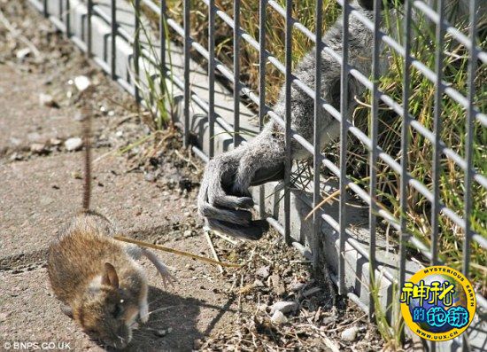 据英国《每日邮报》报道,英国一名男子在动物园游玩时,有幸抓拍到了一只饥饿的狐猴准备抓住笼子外毫无防备的老鼠的瞬间。