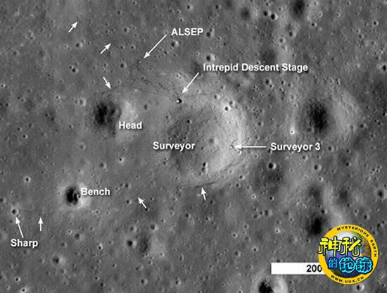 美国探测器拍到阿波罗12号飞船登月痕迹