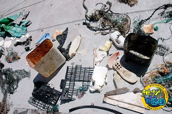 拍摄于2009年夏季,展示的是东太平洋垃圾场的一些垃圾。当时,科考人员将这些垃圾打捞到他们乘坐的SEAPLEX研究船“新地平线”号上。全世界每年生产的塑料高达2.6亿吨,其中可能有10%以垃圾的形式被抛进大海,大部分位于北太平洋环流区旋转的水流以及其它海洋漩涡内。