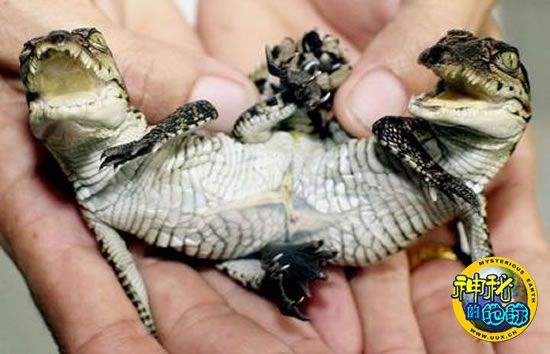 世界上十大奇异动物 来源: 神秘的地球 时间:2009年9月21日 10:21 3.连体鳄鱼 连体鳄鱼 2001年6月,在泰国曼谷市郊的鳄鱼农场降生了一条连体鳄鱼,两条鳄鱼身体的底部连在一起,有8条腿和2条尾巴。这个连体鳄鱼长约17厘米,重约0.15磅。 上一页12345678910下一页 上一篇 下一篇