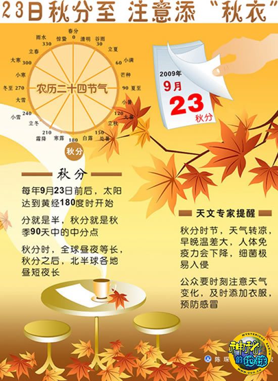 天文专家提醒,随着秋分节气的到来,气温降低的速度将明显加快,公众要准备好换季的秋装。