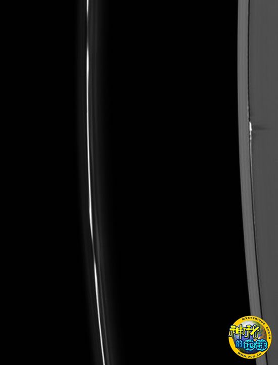 据图片显示,其中一个波浪状结构的高度超出土星环平面近2.5英里(约合4公里)。“卡西尼”号任务负责人表示,这个巨大的结构由土星的卫星——土卫三十五“达佛涅斯”引力拖拽所致。它是土星环中的“最高峰”。