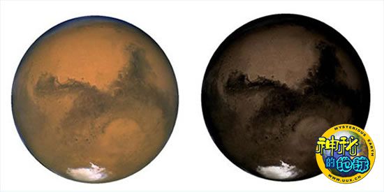 火星也曾一度像右边图中的那样,而不是左边图中那样有着红色的外表