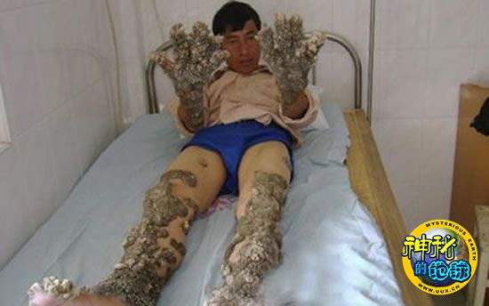据英国《每日电讯报》报道,福建省宁德霞浦水门乡水38岁男子林天转被称作珊瑚人,他在13岁发现自己手和脚上长出了一些瘤状物。后来这些像硬壳的东西迅速长满他全身。不过现在他已通过手术,成功治愈了该病。