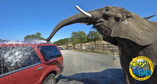 洗车既乏味又耗时。但是,在美国一家野生动物园,你就不会再有这样的感受了,因为他们雇佣两只大象来做这项工作。