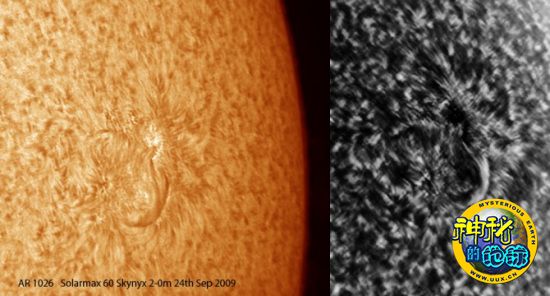 据悉,天文学家伽利略在17世纪早期曾观测到太阳黑子活动,也是从那时起人类开始对太阳黑子活动进行观测计数。国际上规定,从1755年起算的黑子周期为第一周,然后顺序排列。1999年开始为第23周。通过观察人们发现,太阳黑子活动周期长短也会发生变化。因此美国航天局前太阳黑子首席观测员迈克尔-凯泽今年早些时候表示,此次太阳黑子活动低谷期时间长“并非过于极端”。照片显示的是两个太阳黑子之一:AR1026.