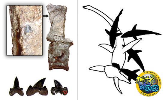 据悉,用于此次分析的蛇颈龙骨骼化石是1968年在日本发现的。由于缺少可供比较的化石样本以及其它资料,科学家直到最近才对外公布有关这些骨骼化石的正式描述。德保罗大学古生物学家Kenshu Shimada回忆说:“在日本,我在很小的时候就听说一些鲨鱼牙齿嵌入这只蛇颈龙的骨骼。根据公布的描述,大量鲨鱼牙齿残留在蛇颈龙化石中,数量超过80颗。”