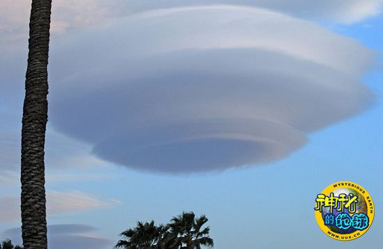当气流遇到其他障碍时也会形成荚状云,比如高度很高的雷雨云,因为它们也通常在山丘的顺风坡形成。一个山脉可以形成一系列的荚状云,但是如果山丘比较孤立,那么形成荚状云的形状就会是椭圆形的,远看像UFO一样。有时候形成的椭圆形比较多,看起来就很像一叠叠的盘子。